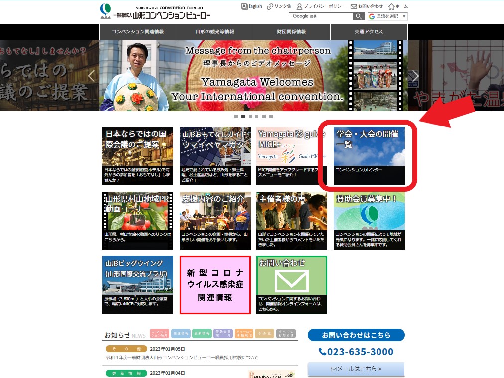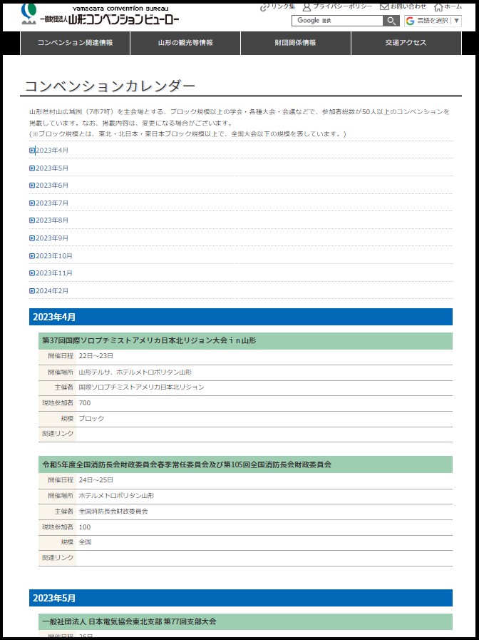 令和5年度の山形県村山広域圏7市7町でのコンベンション開催予定を、ホームページ「コンベンションカレンダー」で紹介しております。