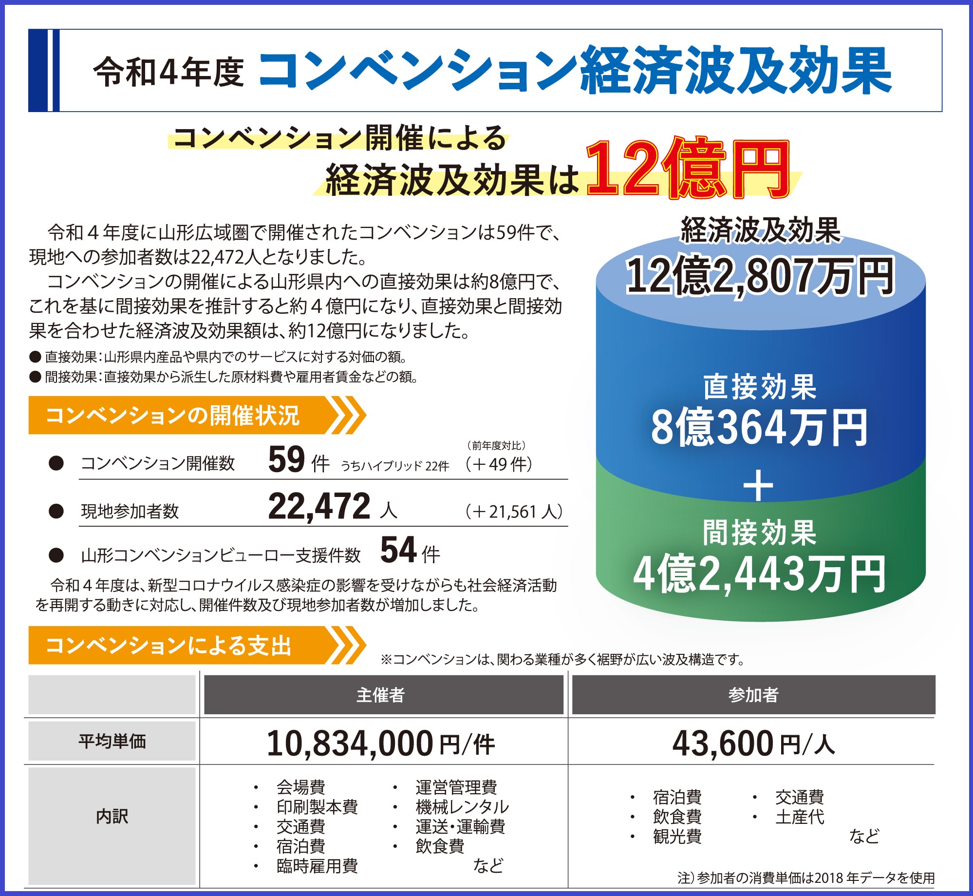 山形コンベンションビューローでは、令和4年度のコンベンションによる山形県への経済波及効果測定をおこないました。