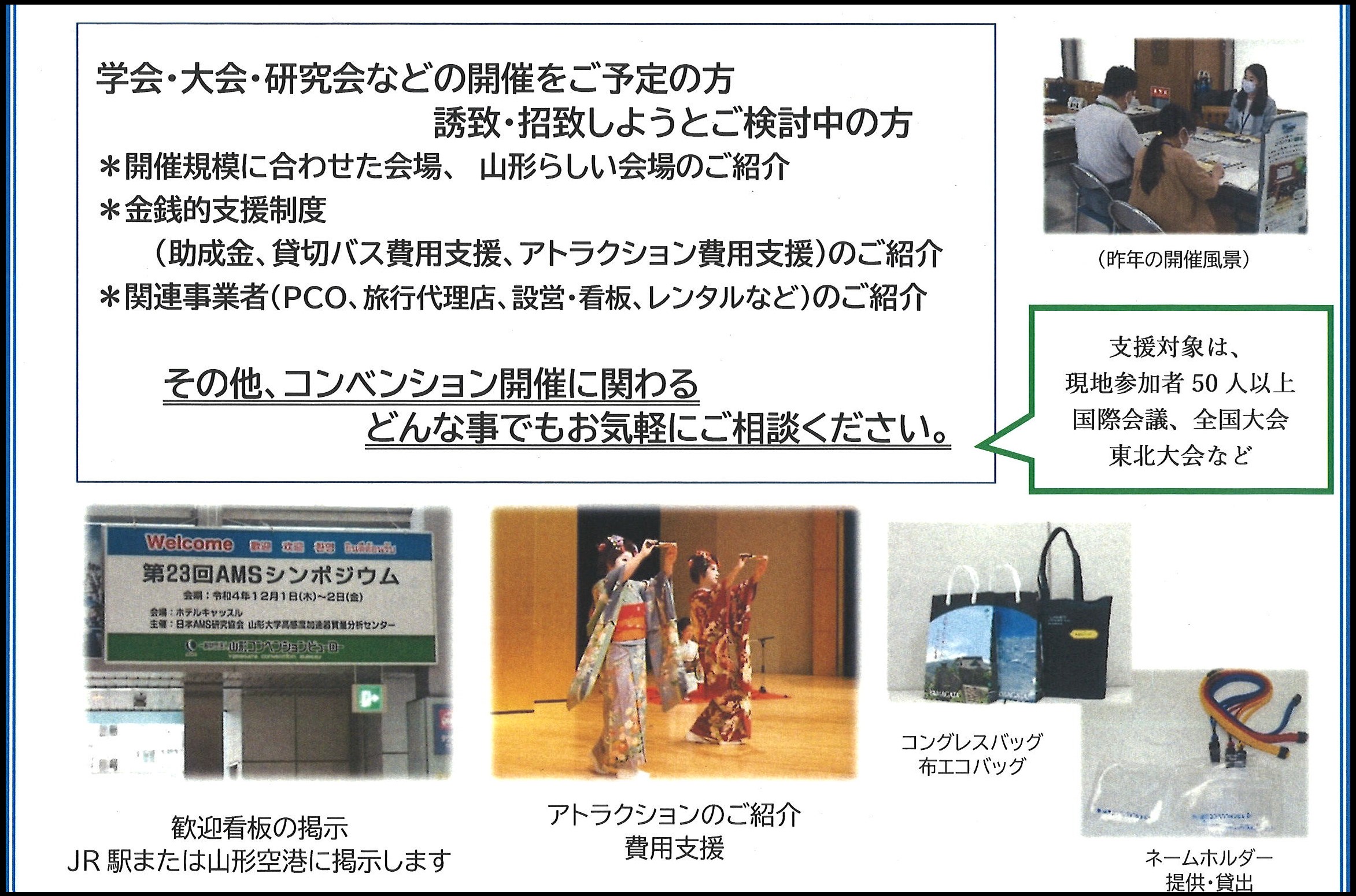 山形コンベンションビューローでは、昨年度より山形大学と山形県立保健医療大学のキャンパス内で、無料のコンベンション相談会を開催しております。