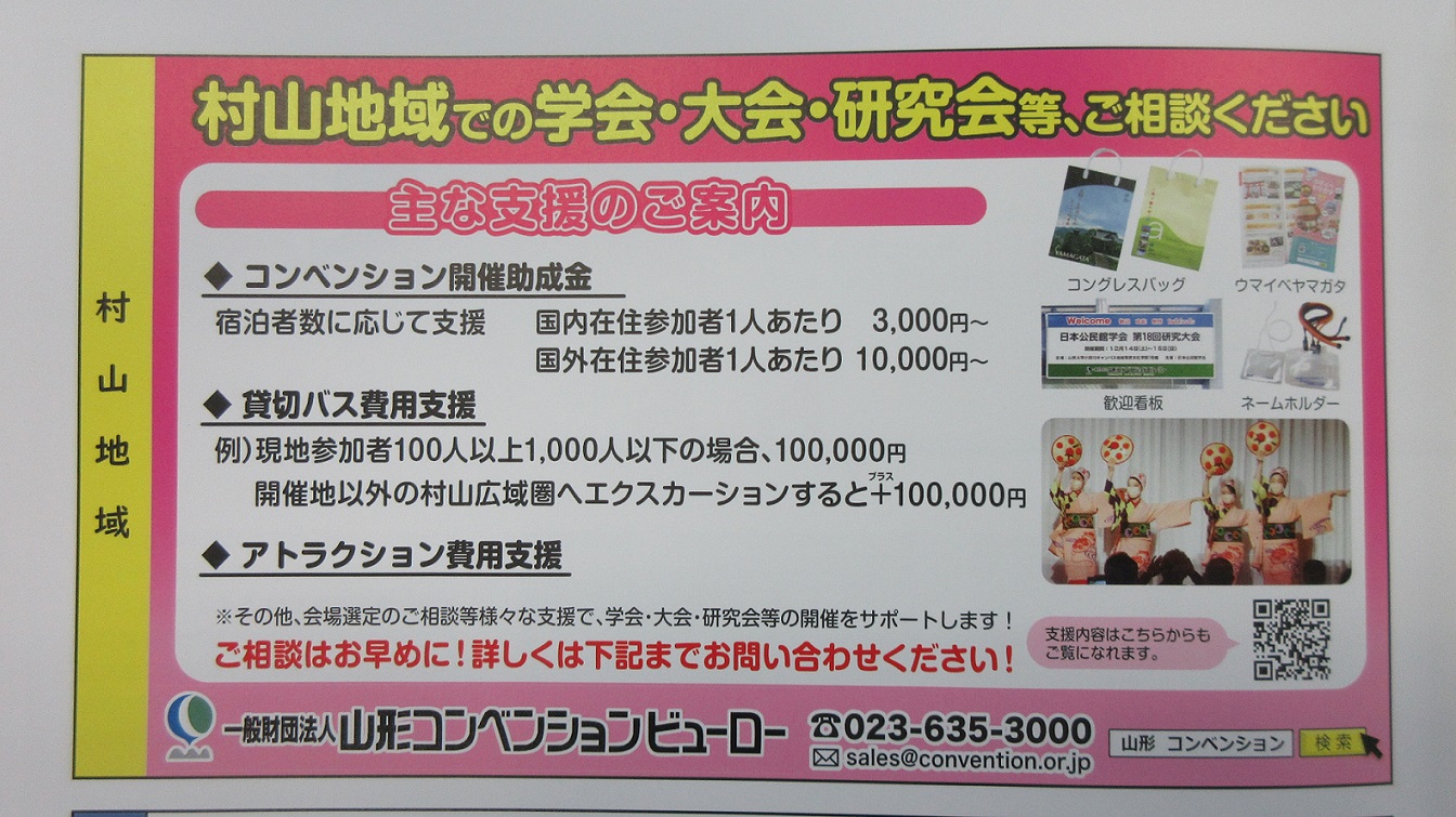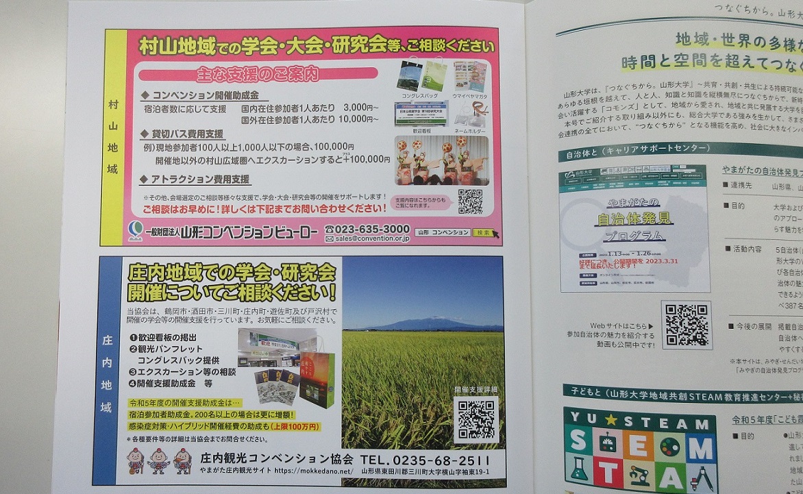 山形大学が年2回発行している広報誌「みどり樹」に、当ビューローの広告を掲載いたしました。山形ビッグウイング1階エレベーター乗り場前にある、7市7町観光物産展示コーナー隣掲示コーナーに置かせていただいておりますので、ご自由にお持ちください。広告では、主な支援についてご案内させていただいております。学会・大会等をご検討の方は、当ビューローまでお問い合わせください。