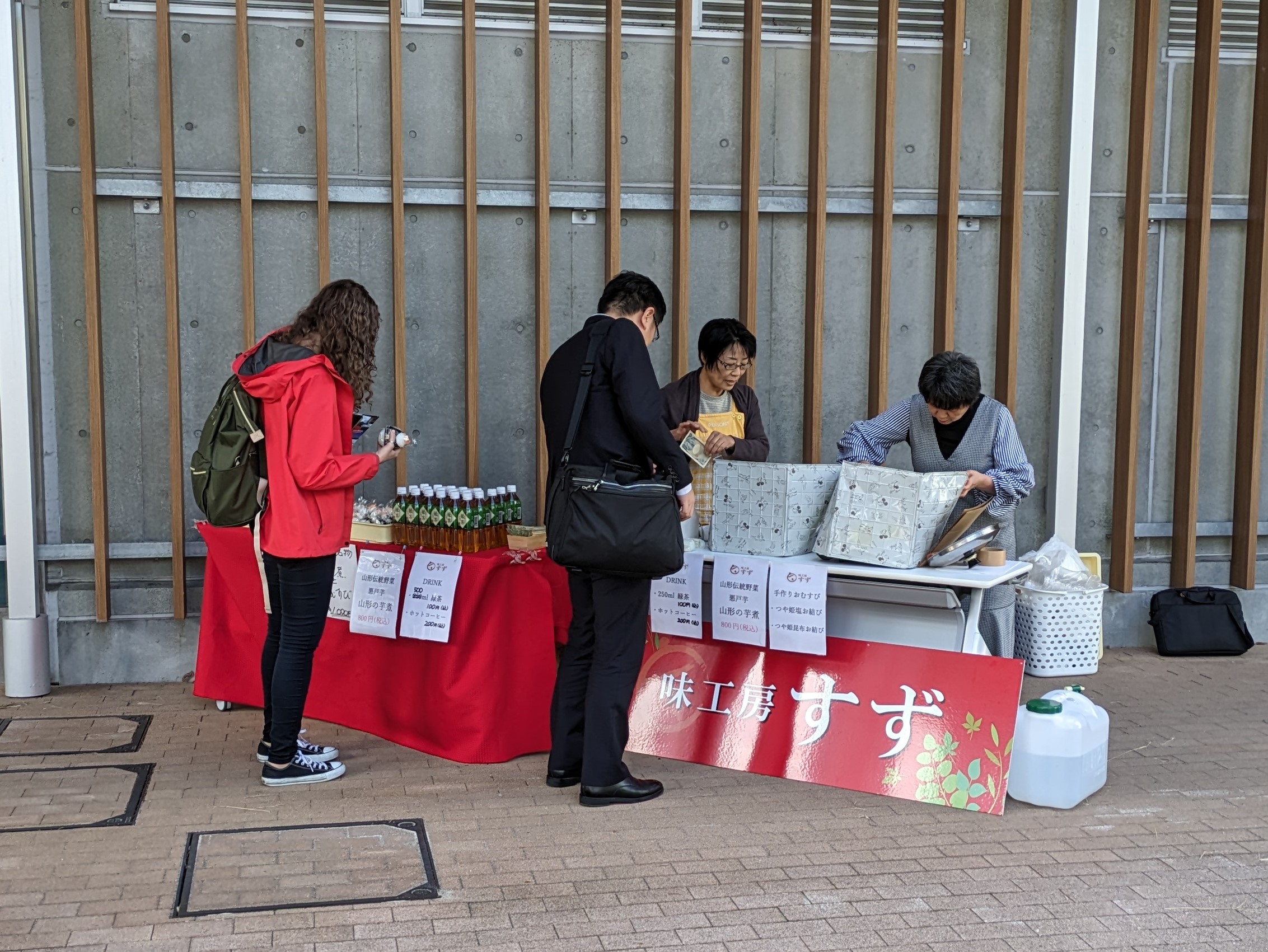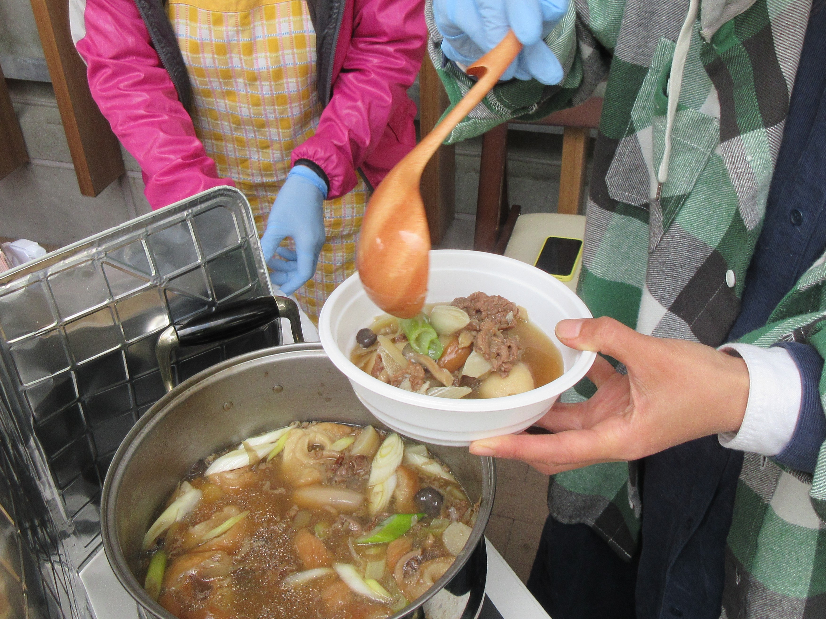 参加者の多くは、初めて山形の芋煮を味わい、米どころ山形のお握りと一緒にご堪能いただきました。