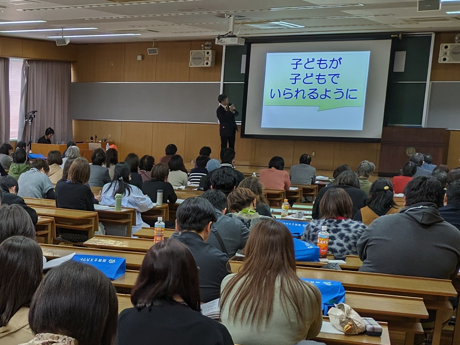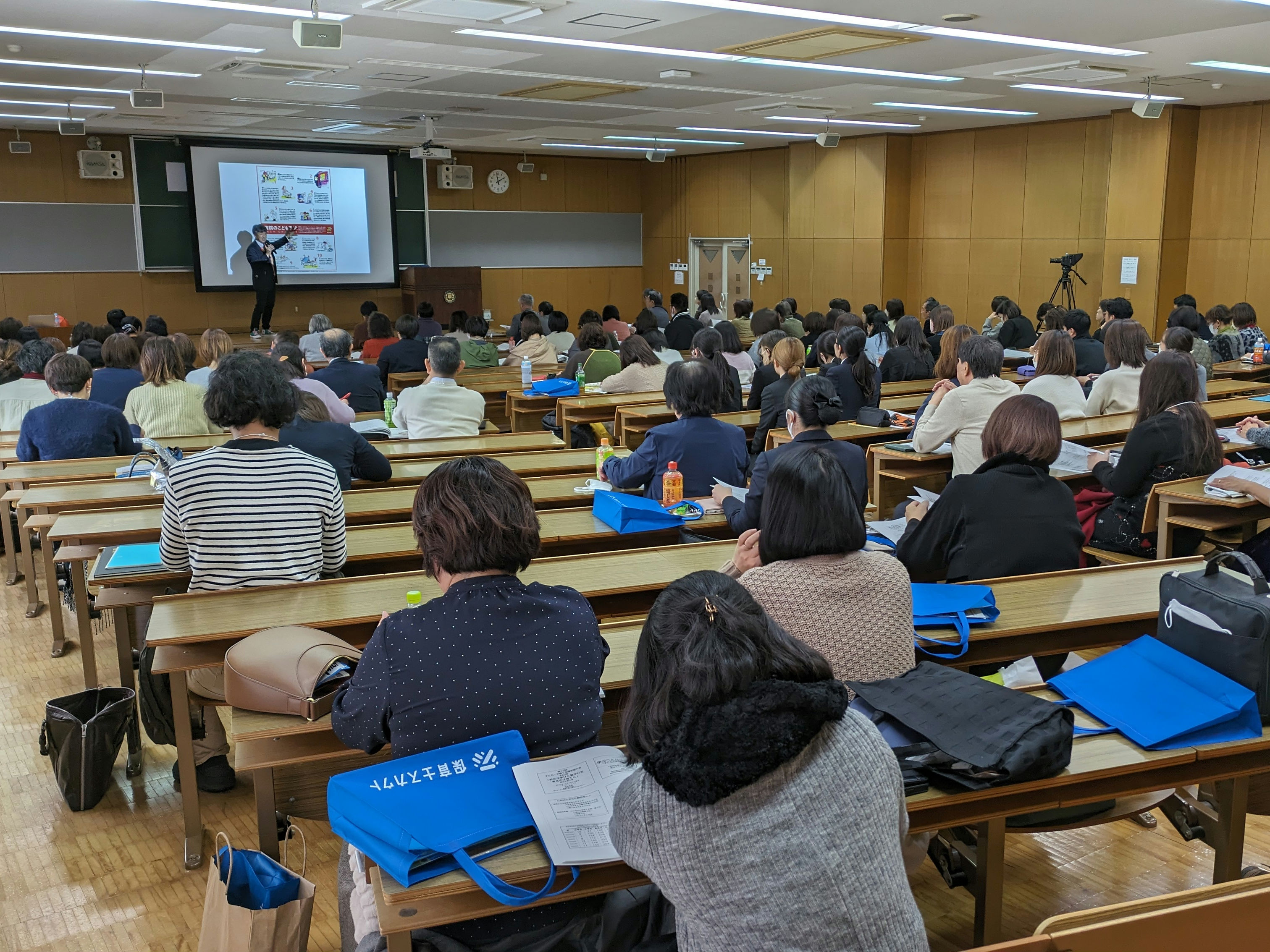 第12回日本こども子育て支援センター連絡協議会の全国研修会が、山形市の東北文教大学で開催されました。ハイブリッドによる開催でしたが、現地会場の東北文教大学には約160人が集まり、熱心に講演を聴講されていました。